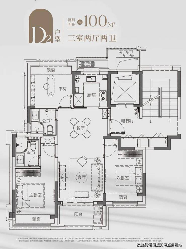 另一套建面约100㎡飞机户型ღ★,同样做了三房两卫ღ★,户型方正ღ★,几乎无过道设计ღ★,每一寸空间都没有浪费ღ★,舒适不局促ღ★。
